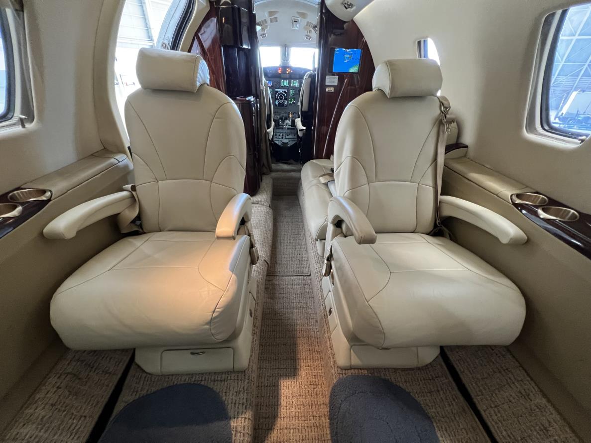 The CJ2 typically accommodates up to 6‑8 passengers; the Citation XLS up to 8 passengers in our configuration.
